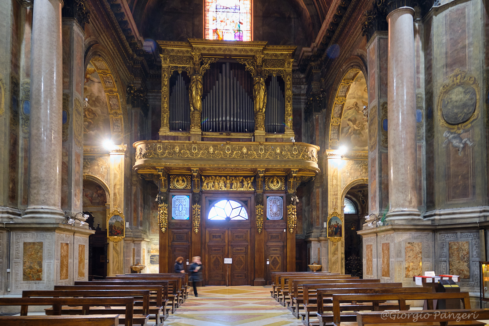 Sulla cantoria in controfacciata, si trova l’organo a canne Tamburini opus 43, costruito nel 1911 riutilizzando la cassa e parte del materiale fonico del precedente organo Carrera,