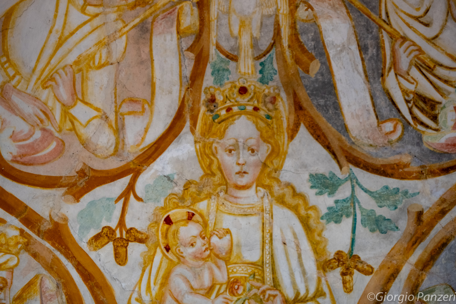 Dietro l’altare si apre una porticina che conduce all’antica abside affrescata da Michelino da Besozzo alla fine del 1300. L’opera ritrae la Beata Vergine assisa tra i rami di una quercia con il Bambin Gesù in grembo. Ai piedi dell’albero troviamo Adamo dormiente mentre sui rami sono raffigurati i Re della Genealogia di Cristo. Nella parte superiore sono visibili i dodici profeti che predissero la nascita di Gesù.