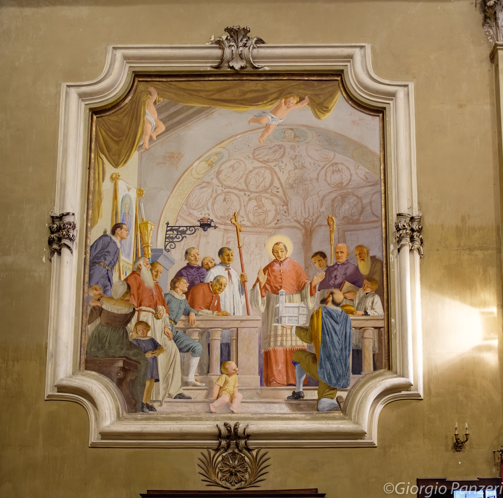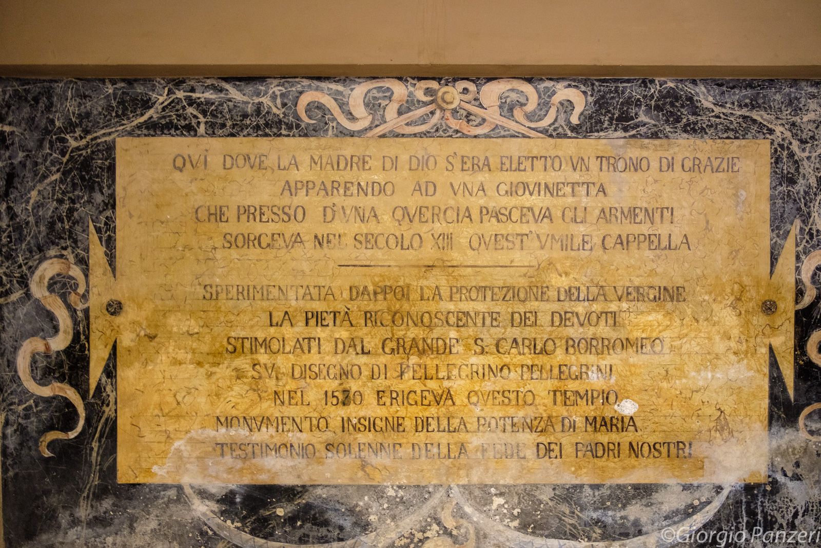 Sopra questa prima cappella, nel 1570 il cardinal San Carlo Borromeo, con il concorso della popolazione mezzane, fece costruire l’attuale edificio in stile rinascimentale, con la bella facciata ricca di nicchie, mensole e numerose cariatidi. L’incarico fu dato all’architetto Pellegrino Tibaldi, detto anche Pellegrino Pellegrini (1527-1596).