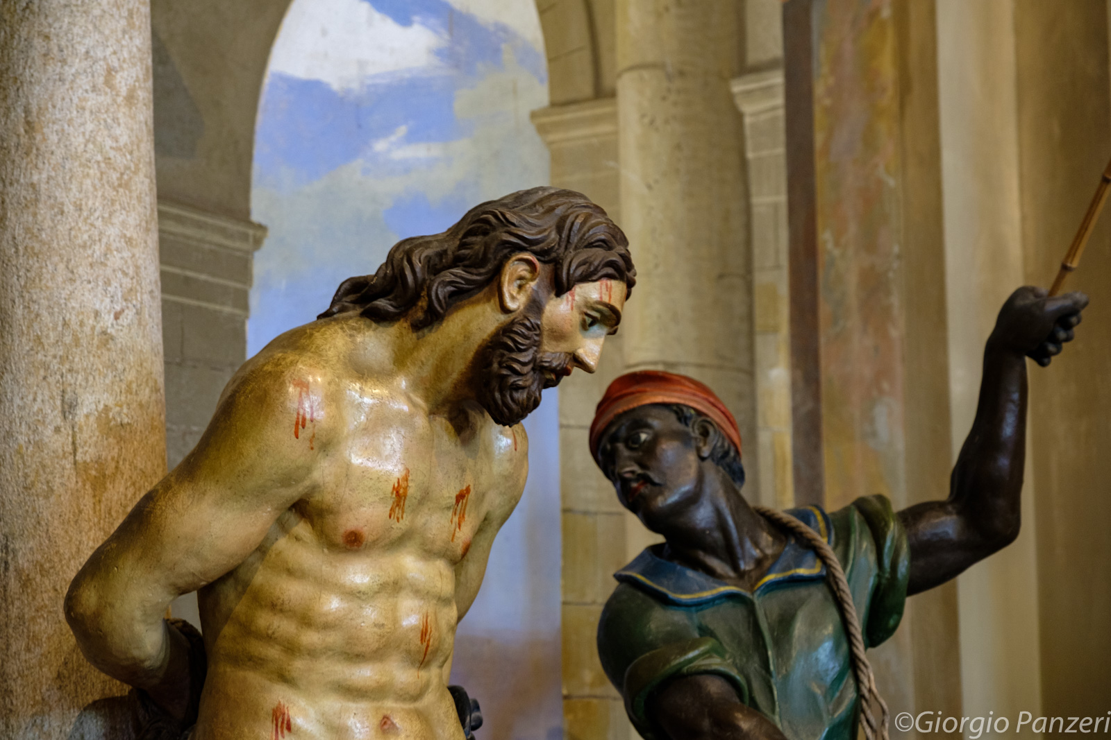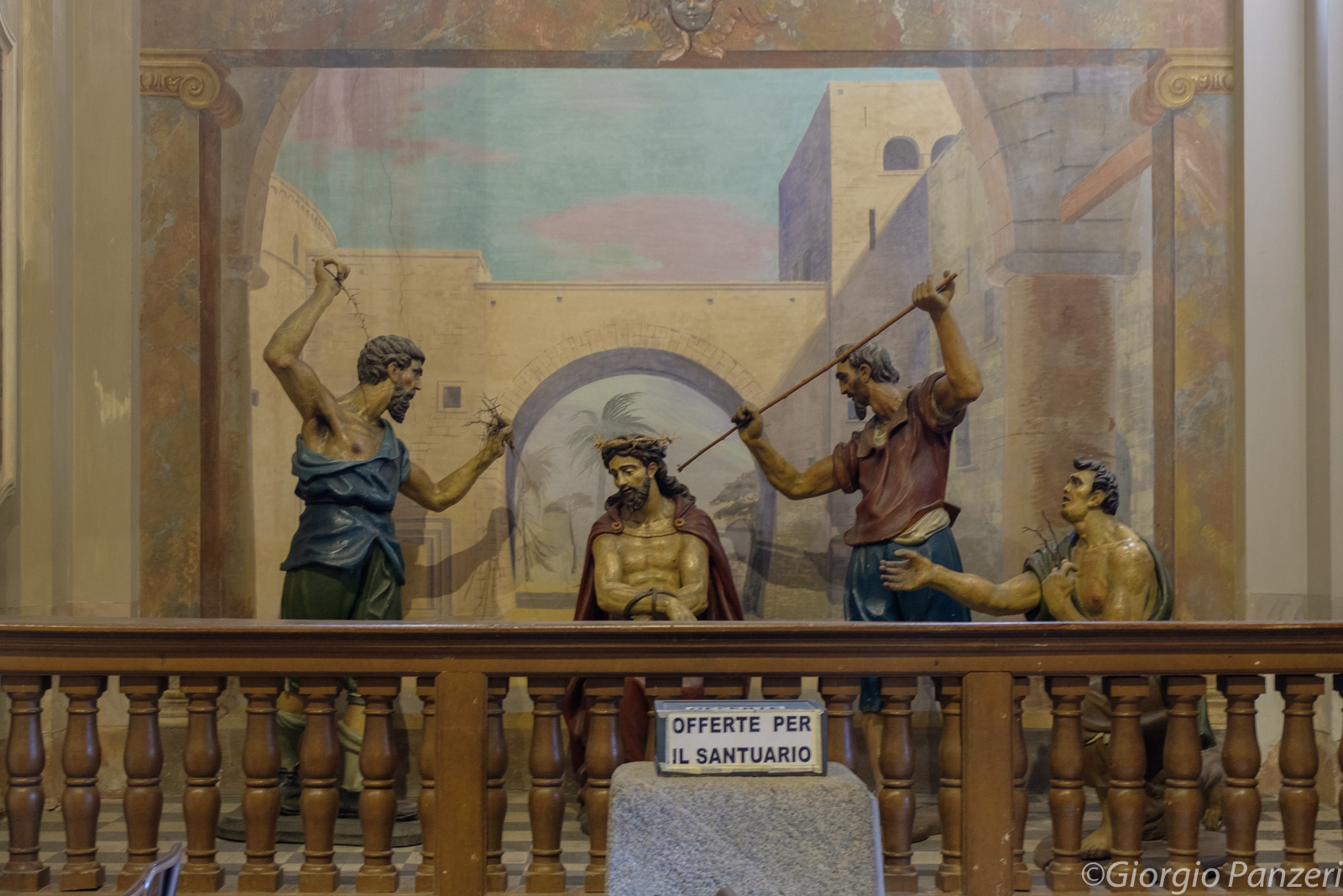 All’interno il santuario è composto da una navata centrale e sei cappelle laterali. Quattro di queste cappelle dette “dei giudei” hanno all’interno statue ligee in grandezza naturale che rappresentano le scene principali della Passione di Gesù. È una particolarità interessantissima perché è molto difficile trovare delle chiese con gruppi di statute piuttosto che affreschi.
