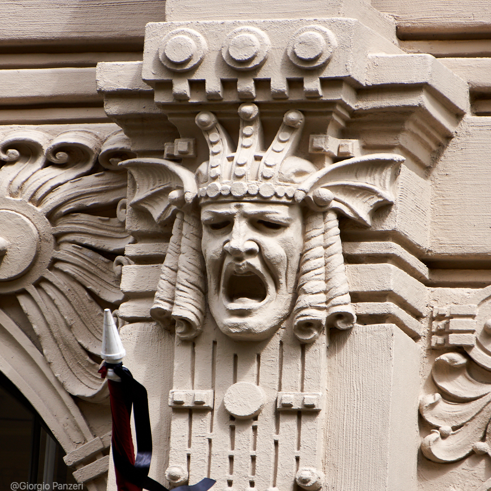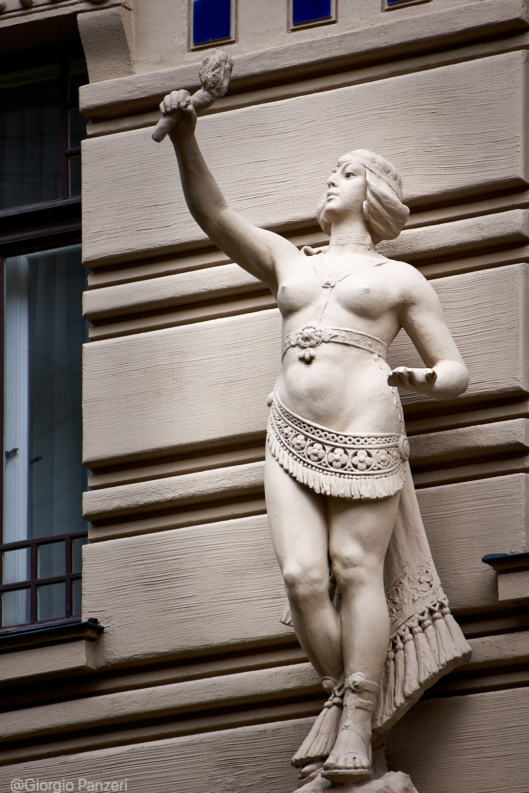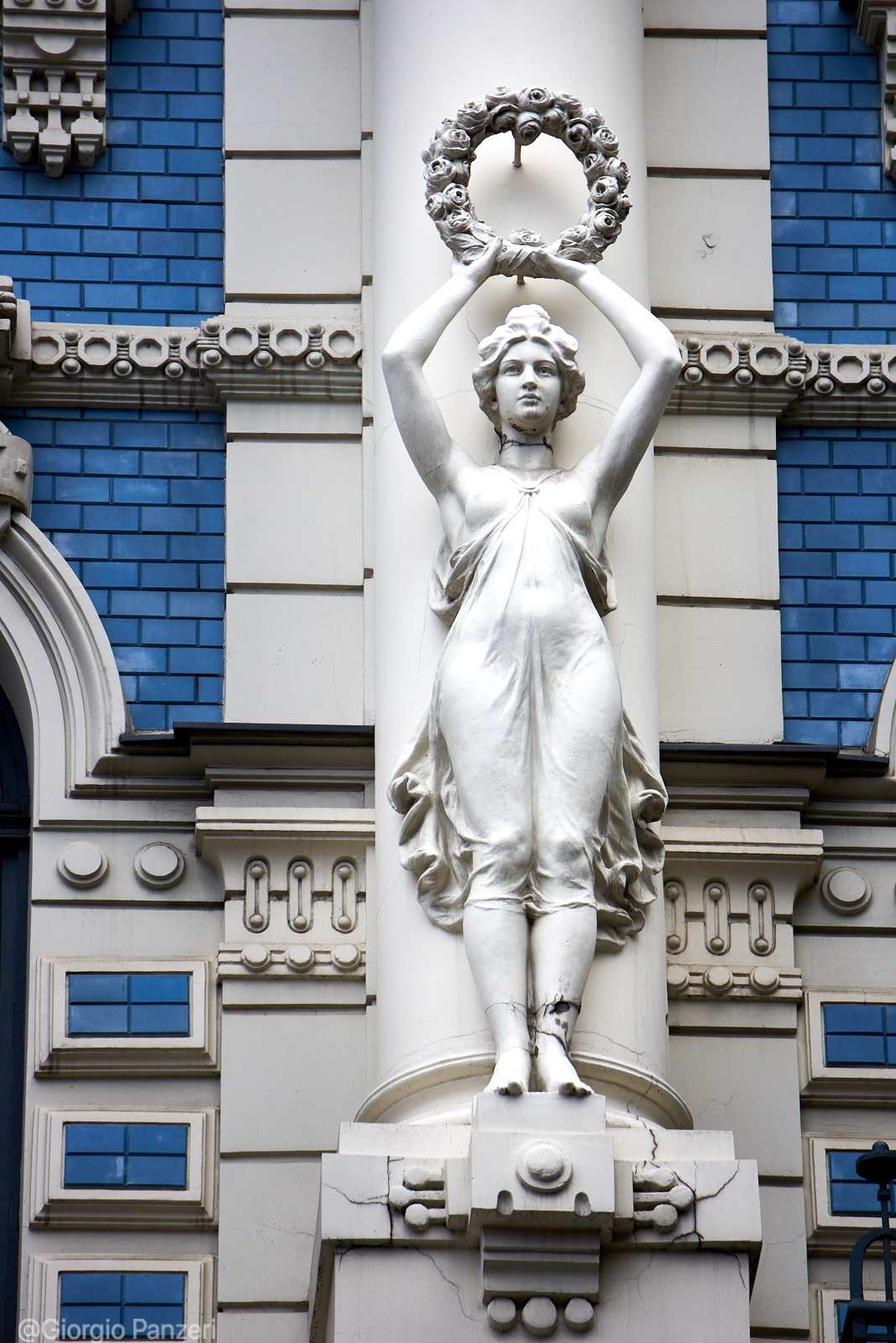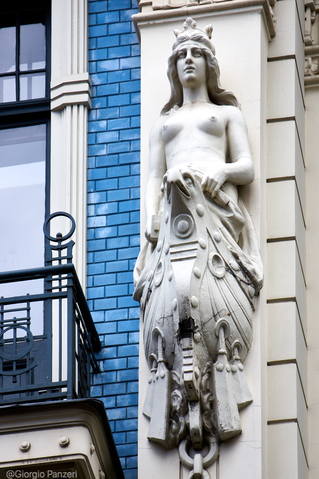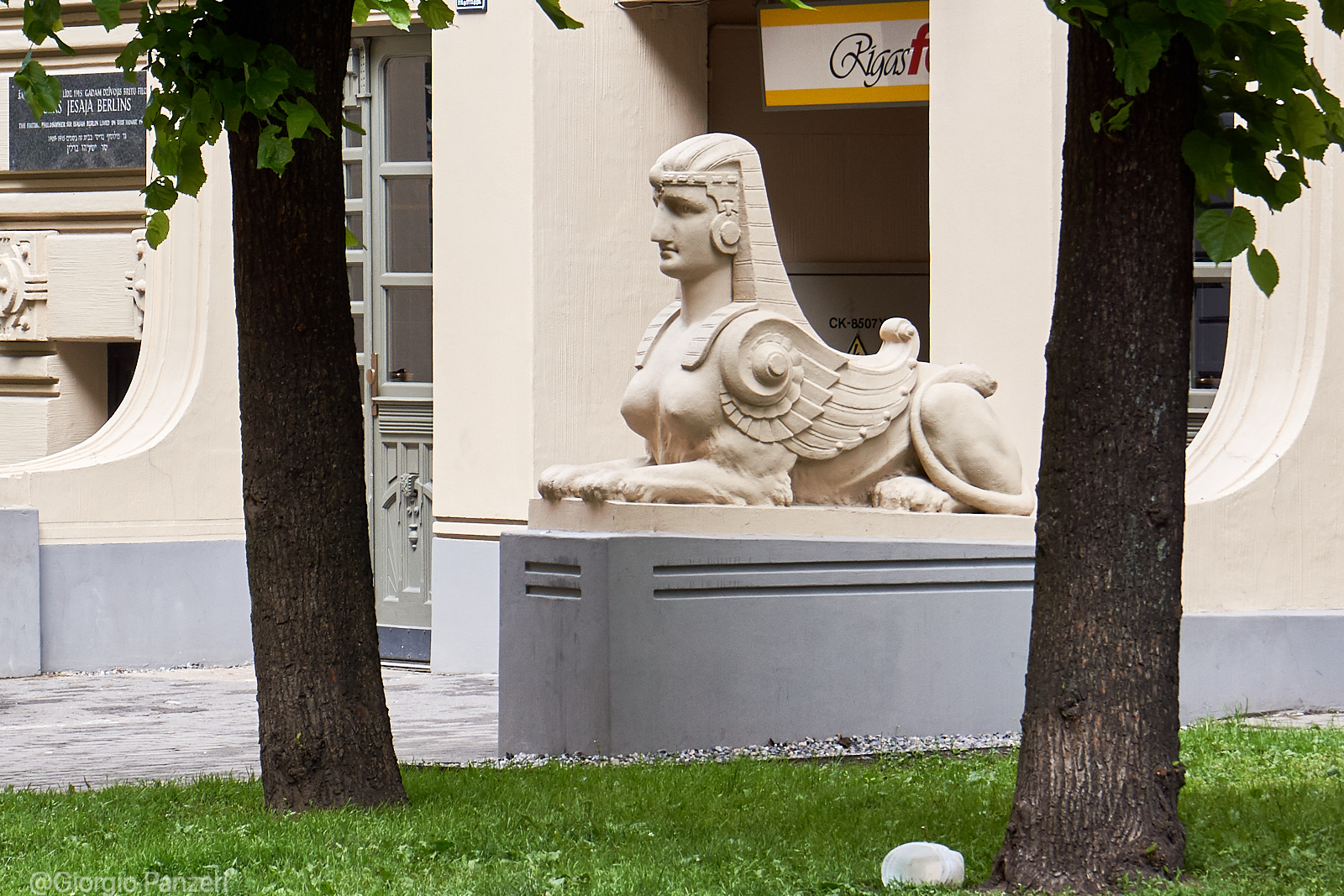 “Elizabetes iela” fiancheggia invece in parte un vasto parco ed è la via in cui si trova, al numero 10b, il più celebre palazzo Art Nouveau di tutta Riga. Costruito nel 1903 su disegno dell’immancabile Ejzenštejn, raggruppa tutte le caratteristiche del particolare Jugendstil eclettico righese, a cominciare dall’accostamento di colori azzurro-bianco, dalle figure mitologiche (mascheroni con teste di Medusa) e dalla profusione di aquile, ghirlande ed elmi.