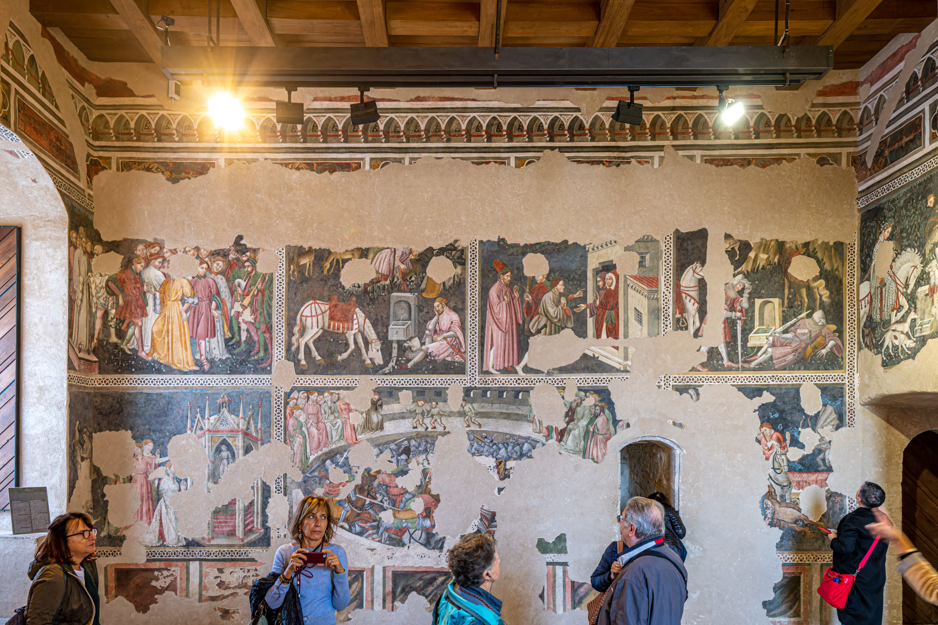 Internamente, il Castello ospita preziose opere d’arte, tra cui affreschi del XV e XVI secolo, che raccontano non solo la storia religiosa, ma anche quella quotidiana dell’epoca. Tra questi, spiccano gli affreschi della Cappella di Sant’Anna, realizzati da artisti della scuola di Filippo Lippi.