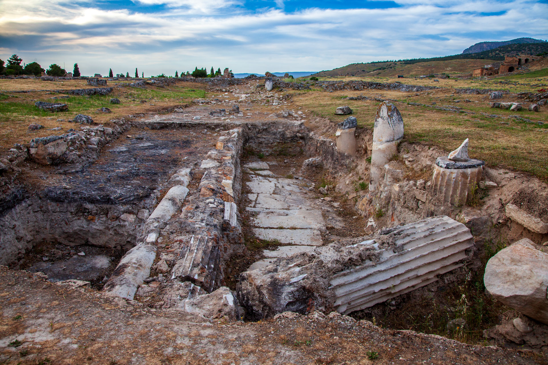 La struttura urbana di Hierapolis riflette la sua prosperità, con magnifiche porte d’ingresso, un’ampia strada principale fiancheggiata da colonne, terme, un teatro, un nymphaeum e una necropoli estesa. Tuttavia, nel corso dei secoli, la città fu più volte distrutta e ricostruita a seguito di terremoti, fino al suo abbandono definitivo nel VII secolo.