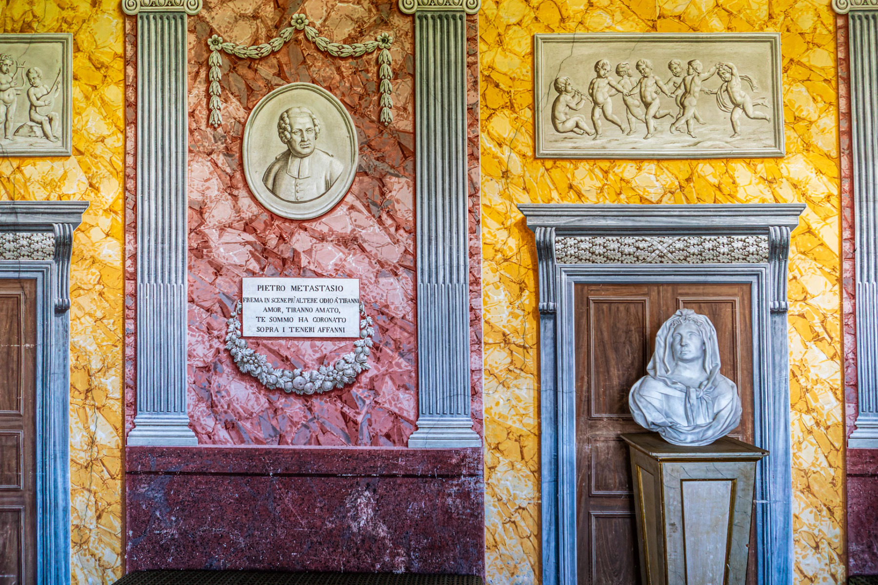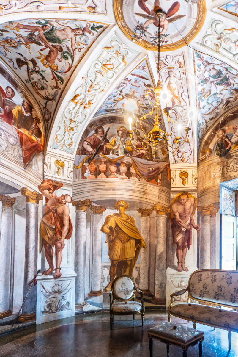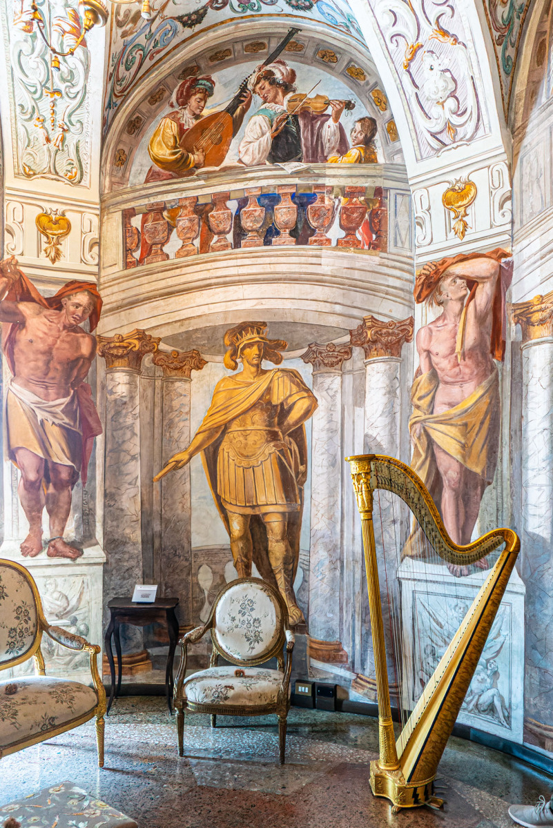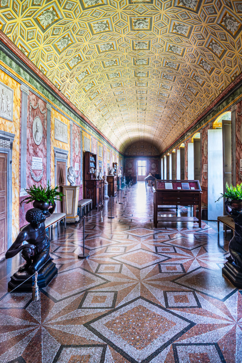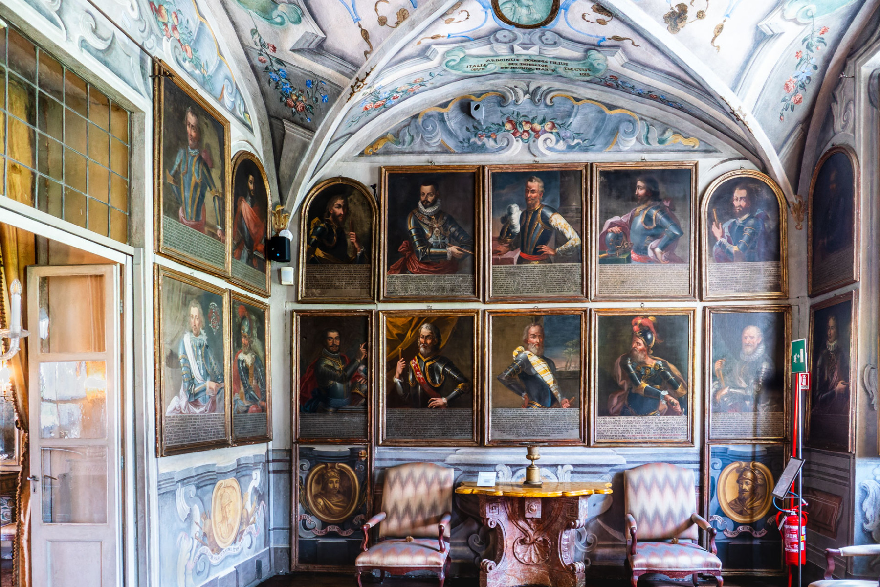 Un altro angolo affascinante è rappresentato dalla biblioteca e dalla galleria dei poeti, realizzate grazie all’abate Tommaso Valperga di Caluso. Qui, ritratti di grandi poeti, da Dante ad Alfieri, decorano le pareti, trasmettendo l’amore per la letteratura che ha permeato quei luoghi. Ogni figura è accompagnata da versi di lode scritti dal Valperga, creando un legame profondo tra arte e storia.