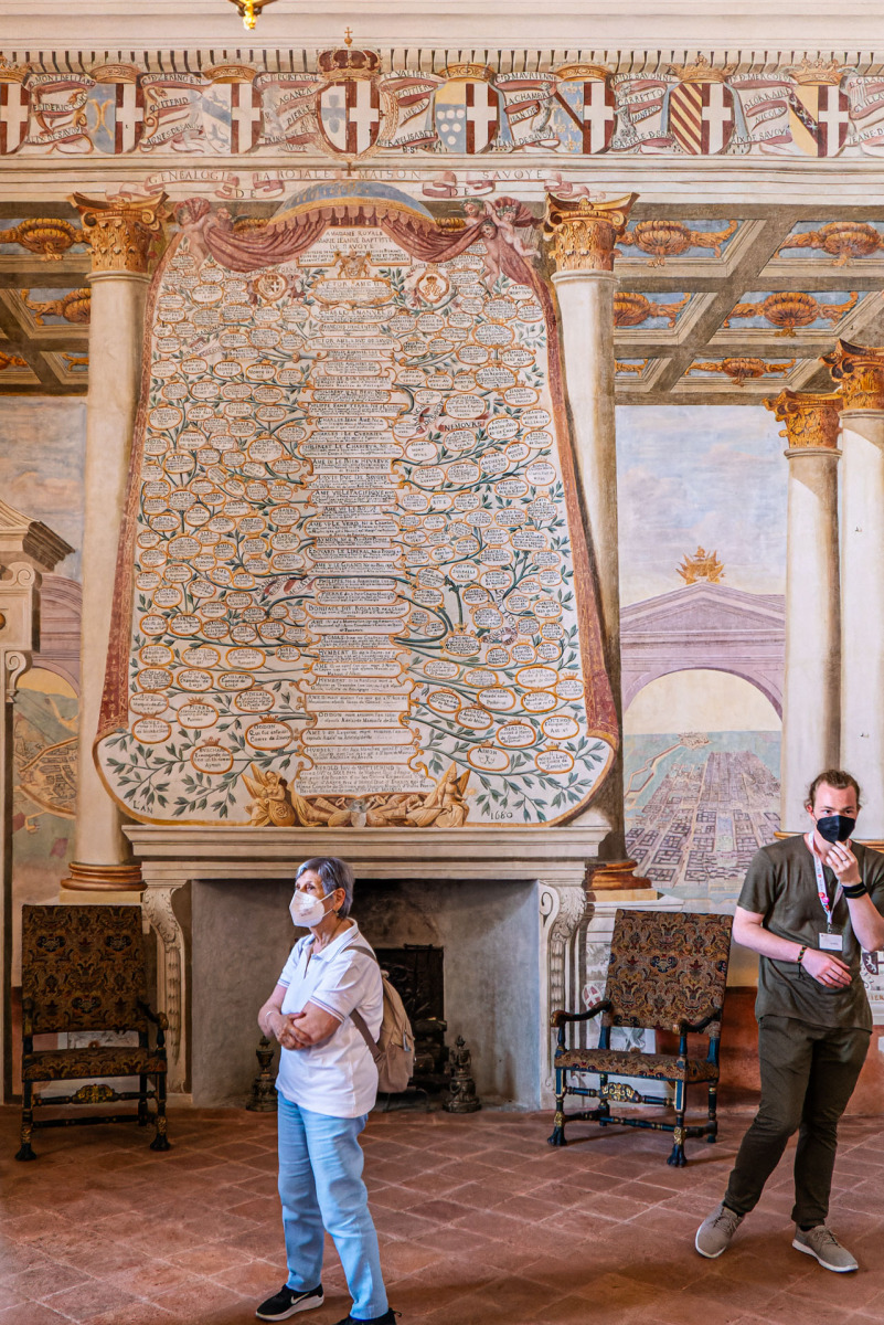 Recentemente, nel 2022, è stato restaurato il magnifico Salone dei Savoia, un tempo celato agli occhi per via di sovrapposizioni di pitture. Gli affreschi che adornano questo salone sono un vero e proprio viaggio nel tempo, rivelando architetture illusionistiche e paesaggi di ben 22 città piemontesi e savoiarde, un fregio di 147 stemmi nobiliari e un albero genealogico magnificamente dettagliato.