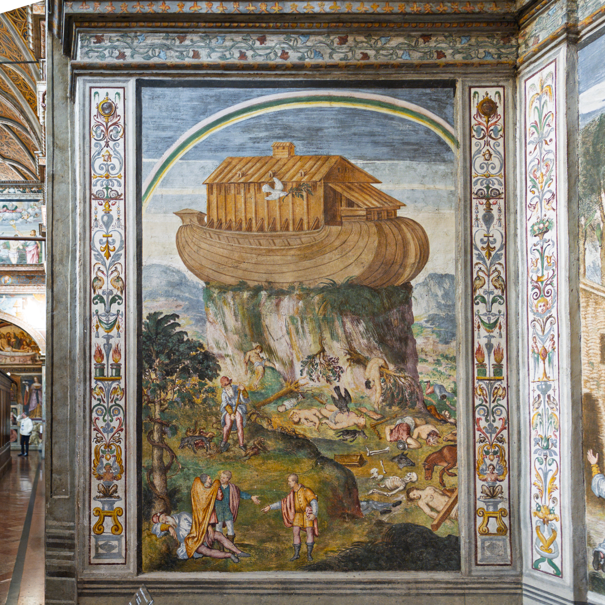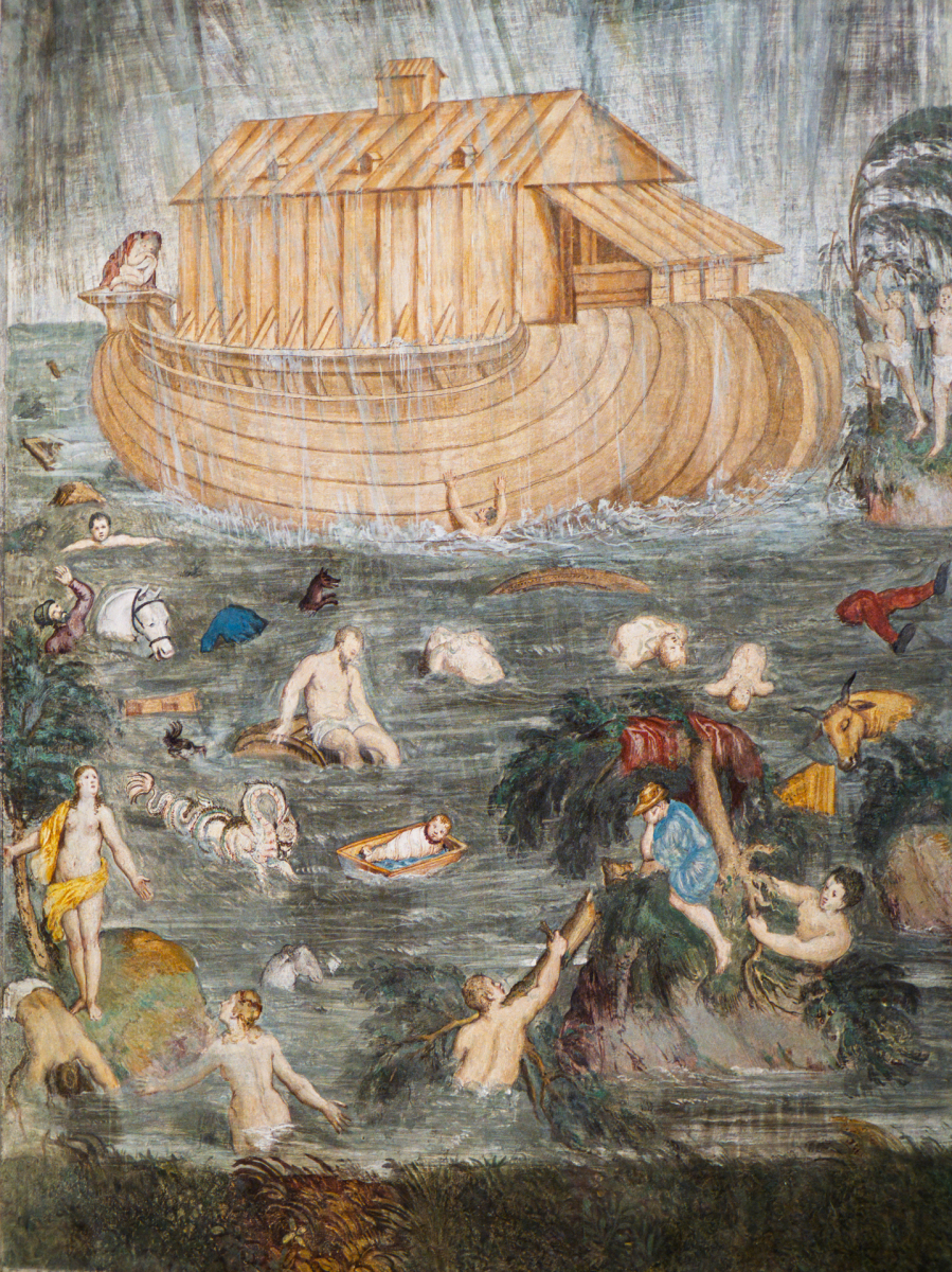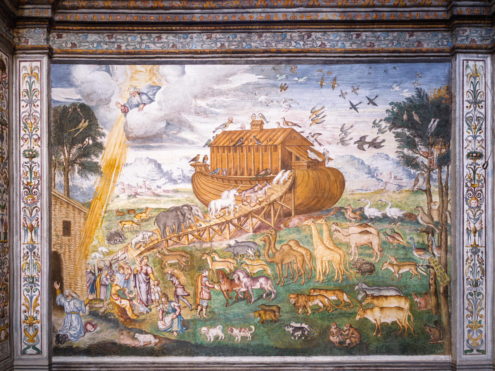 Se guardate bene l’affresco vedrete che nell’Arca di Noè stanno entrando anche gli unicorni.